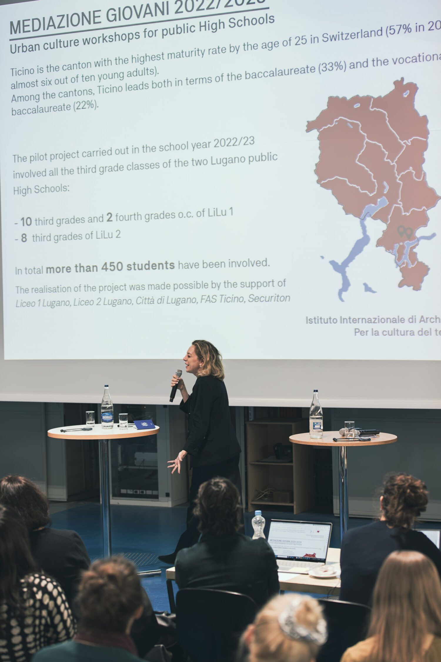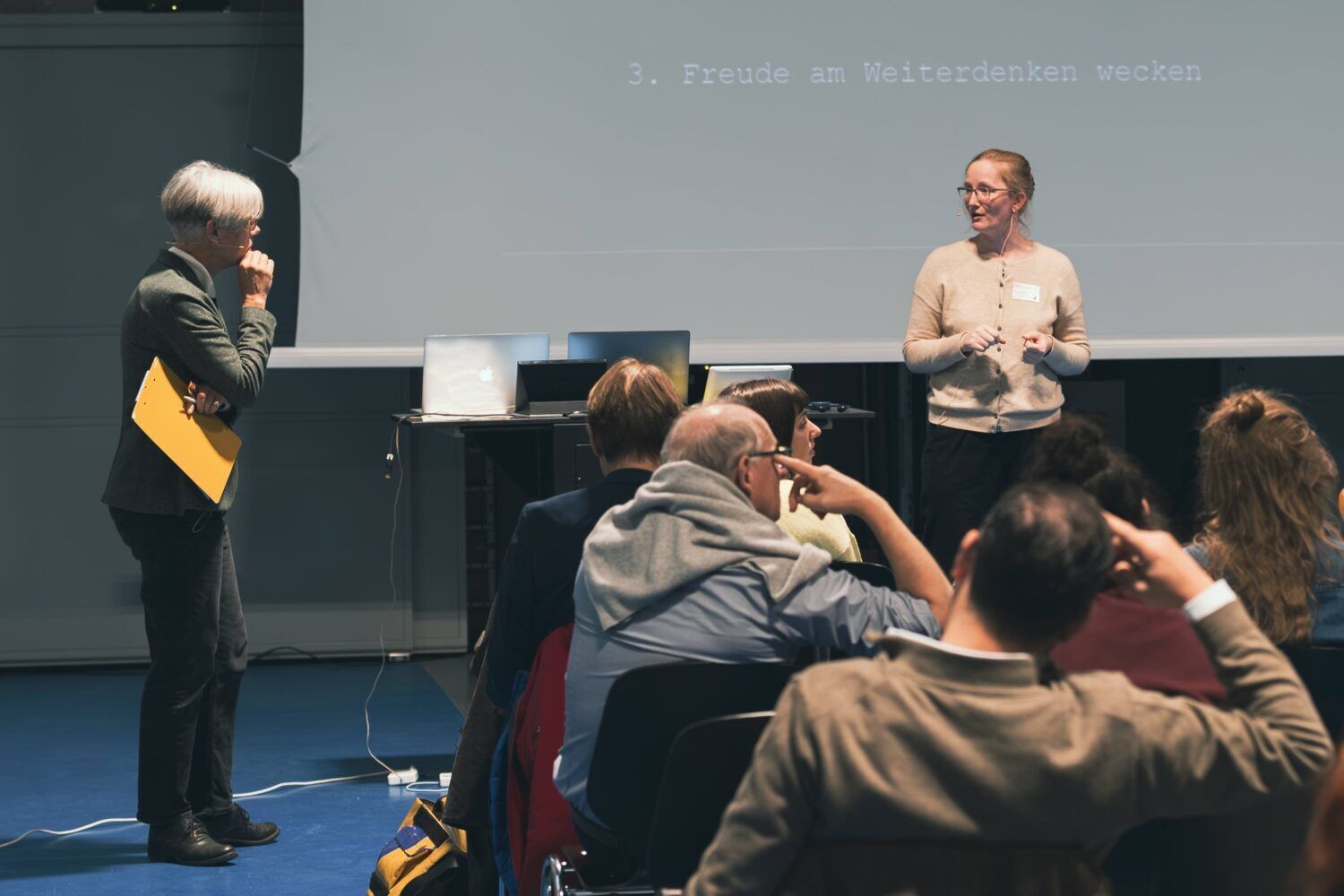 Le cadre était ainsi posé pour la table ronde animée de l’après-midi présentée par Karin Salm et dédiée à la transmission de la culture du bâti aux enfants et aux jeunes. Trois projets scolaires ont été présentés en détail avec des commentaires du professeur de pédagogie Roland Reichenbach: Lea Weniger a expliqué comment, à la Haute école pédagogique de Schwyz, elle étudiait avec une classe d’école primaire les perspectives des enfants sur la culture du bâti et le rôle joué par les thèmes environnementaux dans ce contexte. Andri Gerber a éveillé la curiosité pour la construction durable avec un jeu de simulation sur ordinateur qu’il développe actuellement avec une équipe de la Haute École des Sciences Appliquées de Zurich et de la Haute école pédagogique de Zurich. Le rapport tessinois de Ludovica Molo, directrice de l’Istituto Internazionale di Architettura i2a et présidente de la FAS, s’est avéré particulièrement impressionnant par sa portée: avec son équipe, elle a organisé de grandes manifestations et des procédures de participation pour plus de 450 élèves des gymnases de Lugano afin qu’ils puissent s’exprimer dans le processus de révision du plan directeur communal. Et la méthodologie doit maintenant être appliquée à l’ensemble du canton du Tessin pour le plan directeur cantonal.