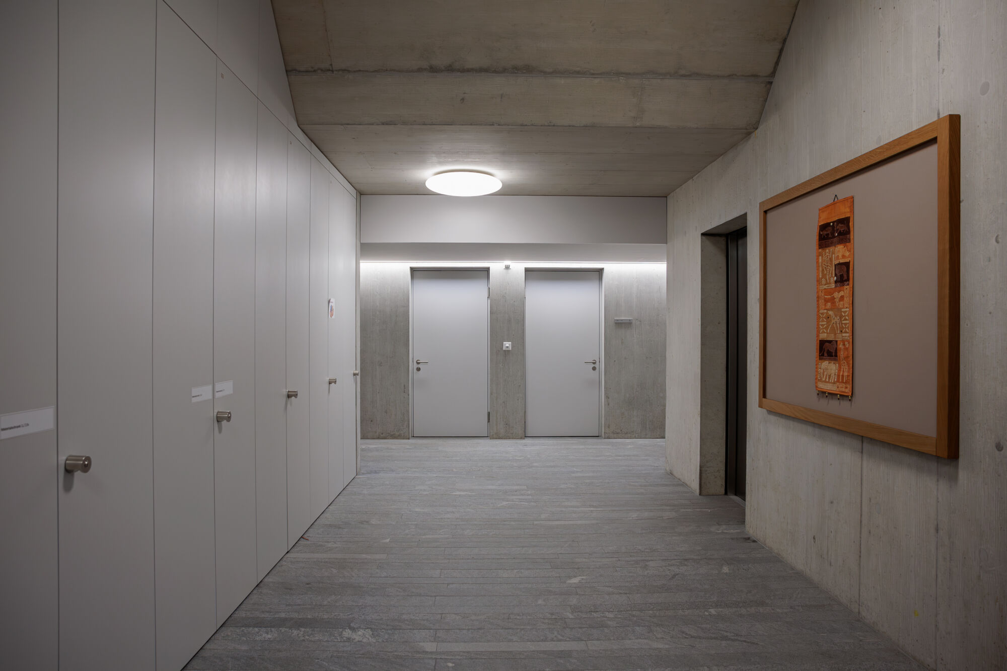 Ensuite, une table ronde animée par Claudia Schwalfenberg, membre du conseil d’Archijeunes, s’est tenue dans l’aula de Munzinger avec les invité·es Giuliano Picciati (directeur de l’école Munzinger), Hanspeter Marmet de Rykart Architekten, Eva Herren de GWJ Architektur et Isabelle Dietrich de Lernraumplanung et du réseau Éducation & Architecture. La discussion s’est appuyée sur les expériences concrètes de développement des espaces scolaires dans le quartier – notamment la rénovation de l’école Munzinger (Rykart Architekten) et la planification actuelle du nouveau bâtiment de l’école Weissenbühl (GWJ Architektur). Ces projets ont servi de point de départ pour débattre de questions plus fondamentales : quels espaces l’école d’aujourd’hui et de demain nécessite-t-elle, et comment les utilisateur·rices et élèves peuvent-ils/elles être impliqué·es dans ces processus de planification. Un sujet pour lequel les intervenant·es du matin avaient déjà posé une excellente base, qui a pu être reprise et enrichie lors de la discussion.