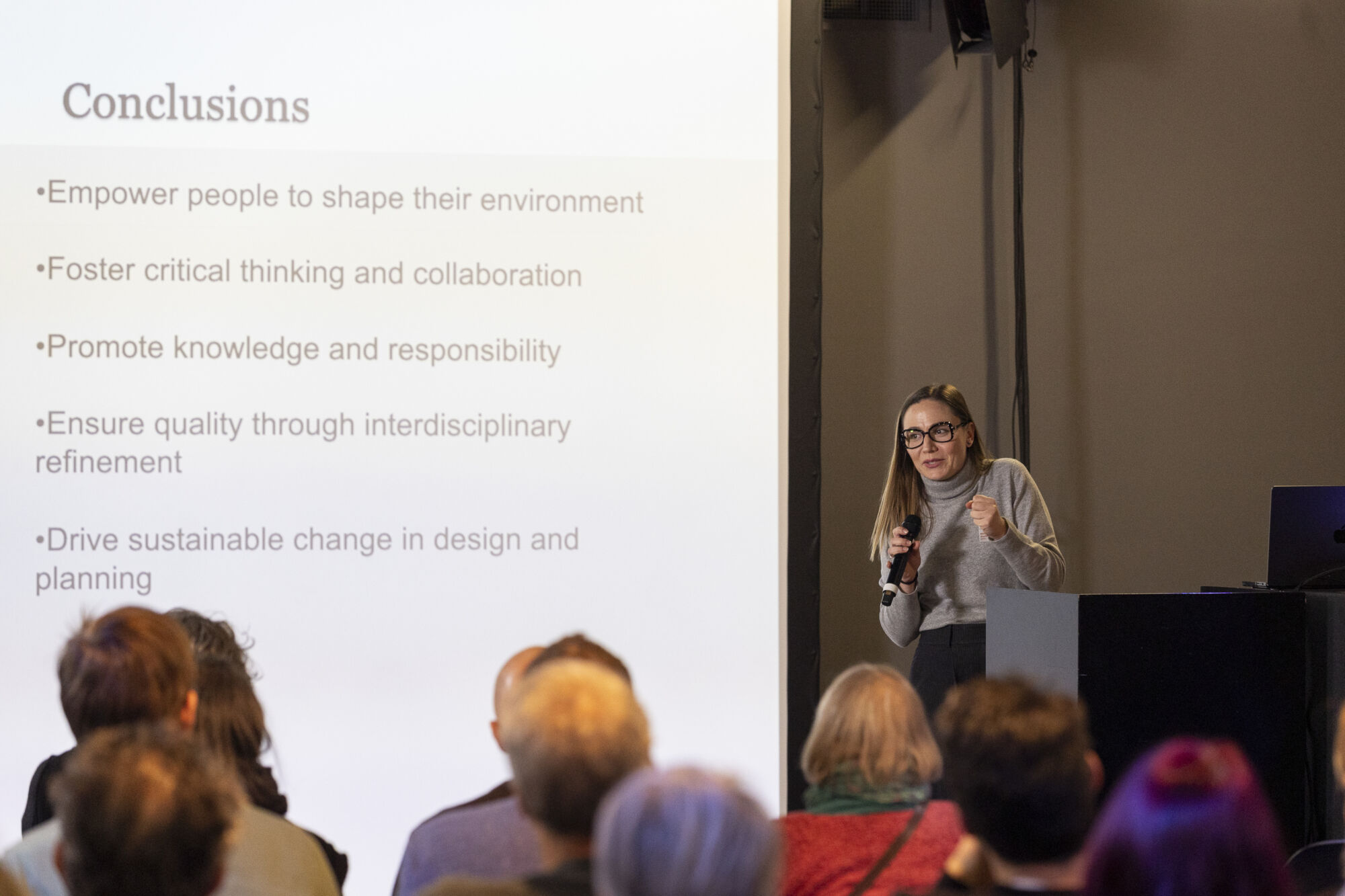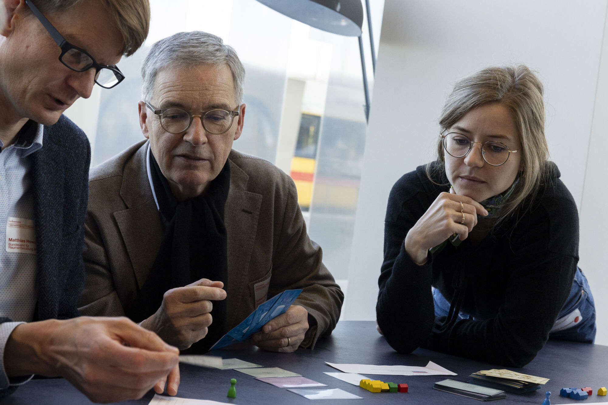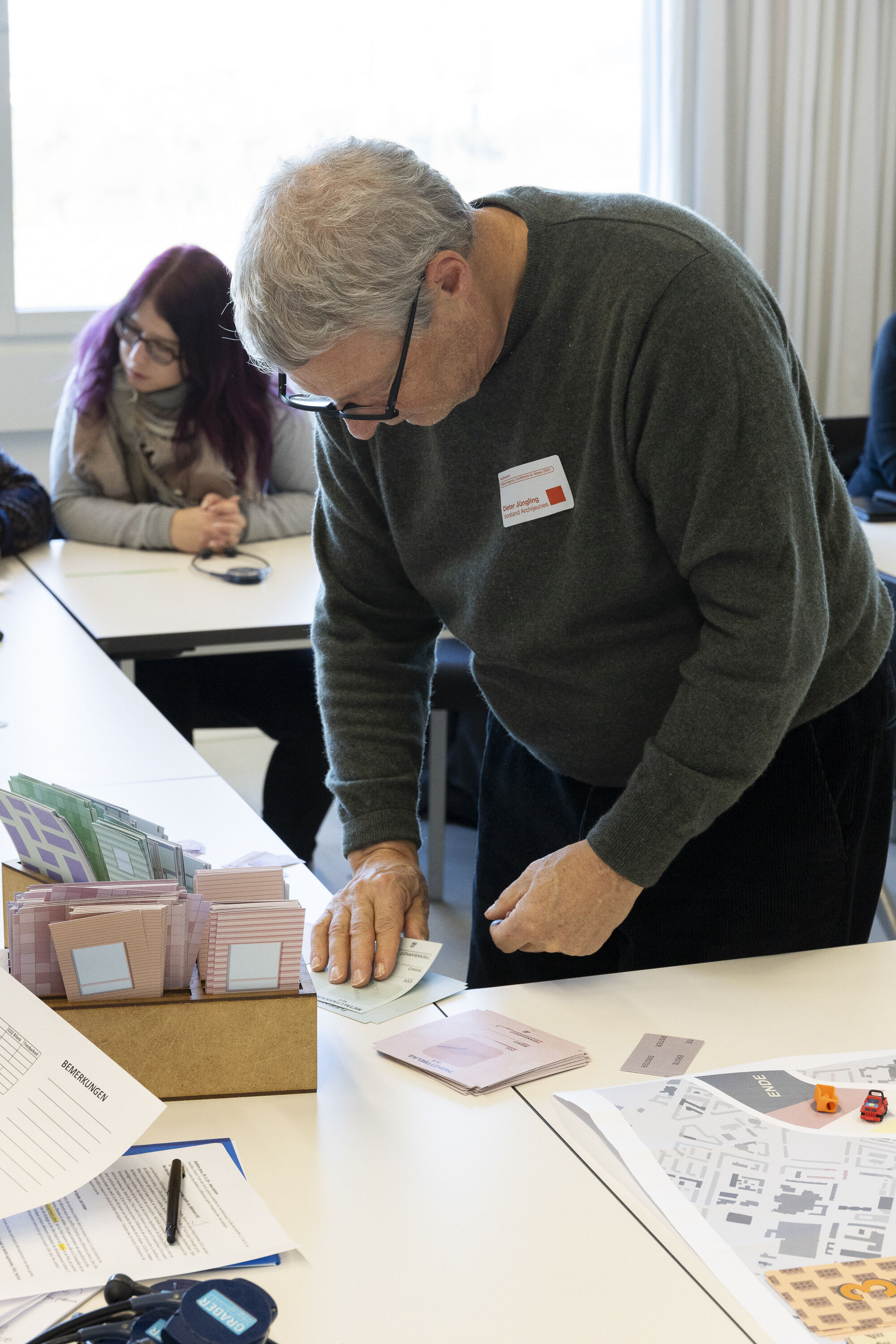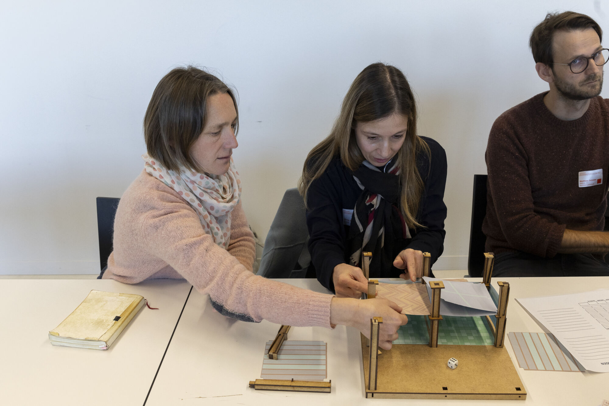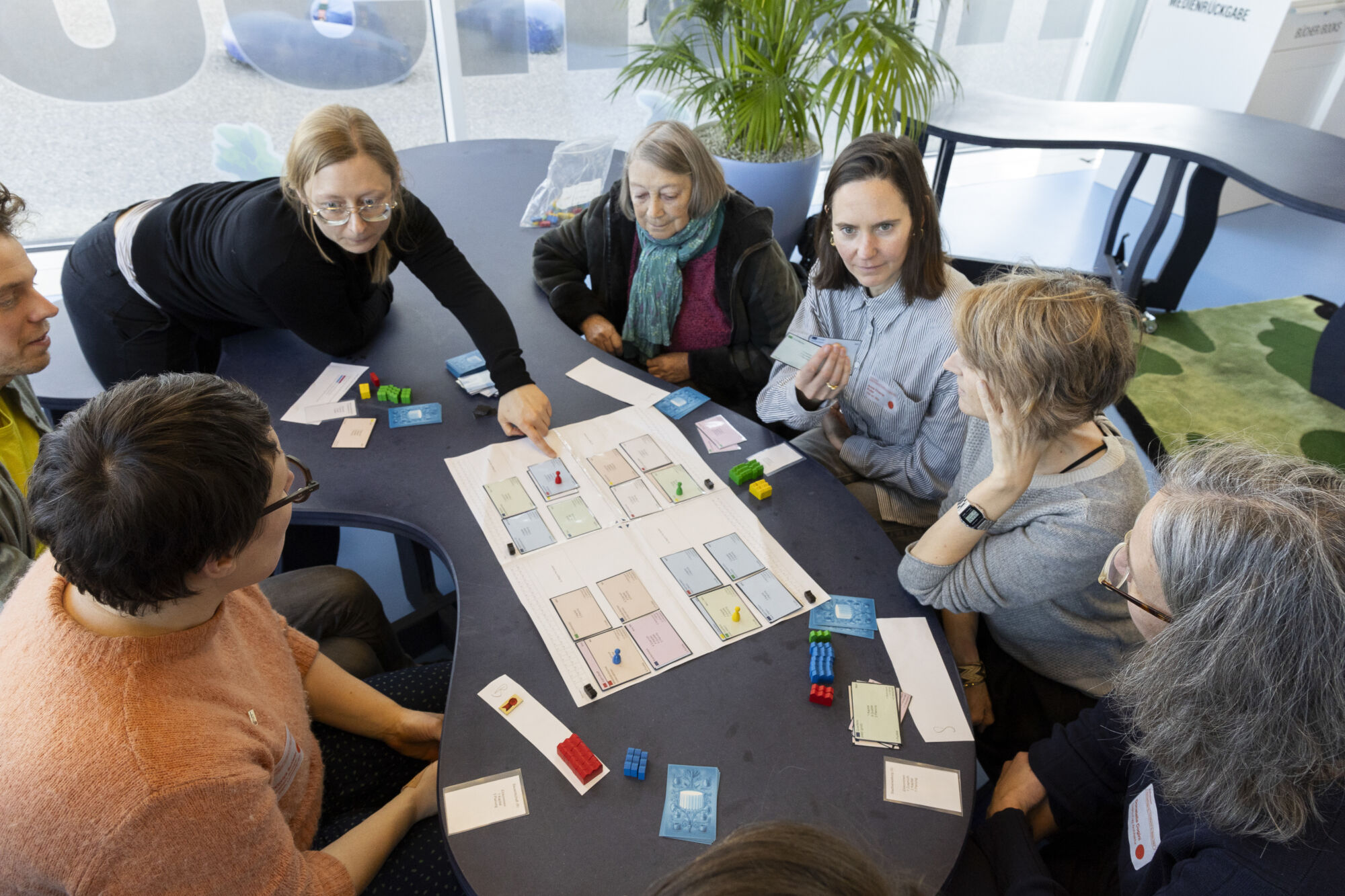 Quatre ateliers interactifs ont ponctué l’après-midi, offrant l’occasion de jouer et d’expérimenter concrètement. Andri Gerber a présenté le Re-Use Game de la ZHAW, conçu par Michelle Schneider, qui sensibilise de manière ludique à la réutilisation des matériaux de construction. Lars Kaiser d’Urban Equipe et Confiyet Aydin du Deutsches Architekturmuseum ont animé une session autour de Conflicity, un jeu de stratégie qui démocratise les enjeux du développement urbain. Un atelier proposé par le HEK a permis aux participants d’explorer des espaces en réalité augmentée peuplés de créatures 3D. Enfin, Nevena Torboski de la drumrum Raumschule a montré comment des jeux classiques comme le jeu de l’échelle ou le Memory peuvent être détournés pour encourager une réflexion créative sur la culture du bâti.