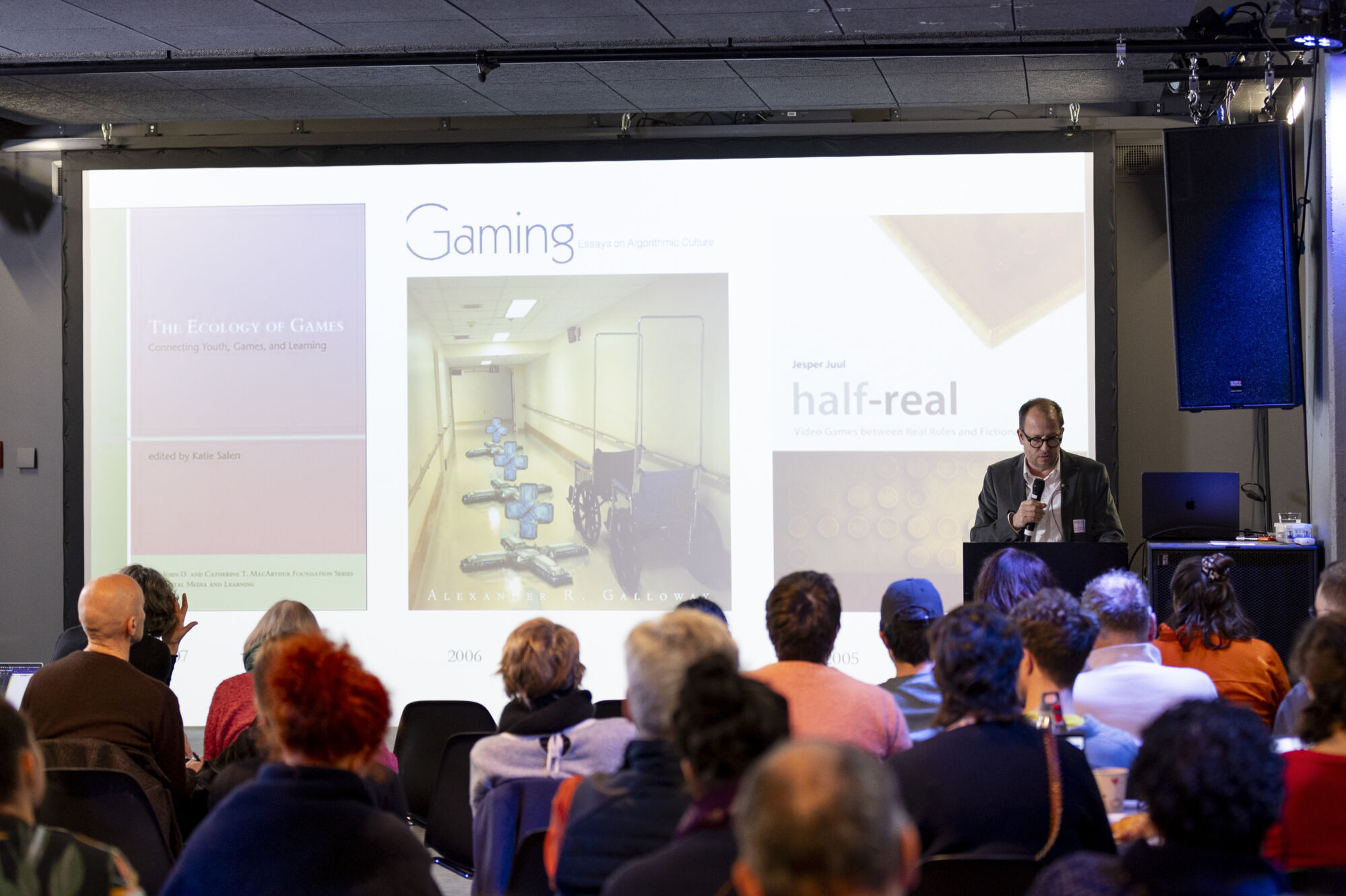 Nous nous sommes retrouvés le 29 novembre 2024 à la Maison des Arts Electroniques (HEK) à Bâle, un lieu idéal où culture numérique et nouvelles formes artistiques de l’ère de l’information se conjuguent avec le jeu. Lors de cette rencontre, nous avons exploré aussi bien les jeux vidéo et informatiques que divers jeux « analogiques ».