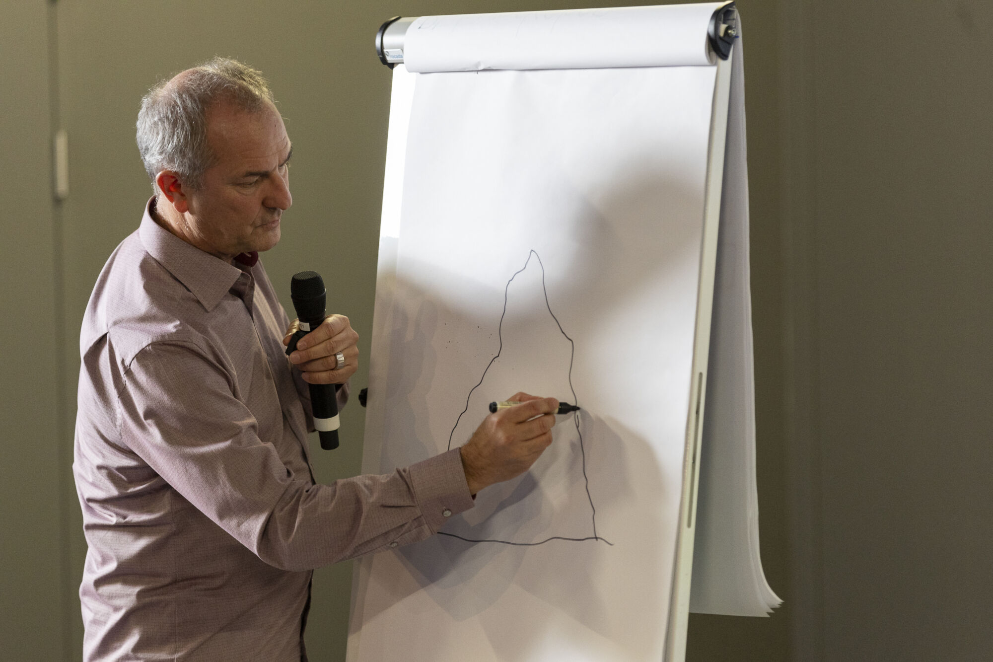 L’après-midi a commencé par une intervention d’Ueli Frei de Gebrüdern Frei, qui nous a plongés dans les coulisses du développement de jeux. Il a insisté sur l’importance de la cohérence, de la clarté et d’une narration engageante pour concevoir un jeu réussi. Un exercice collectif nous a ensuite permis de poser les bases d’un jeu potentiel.