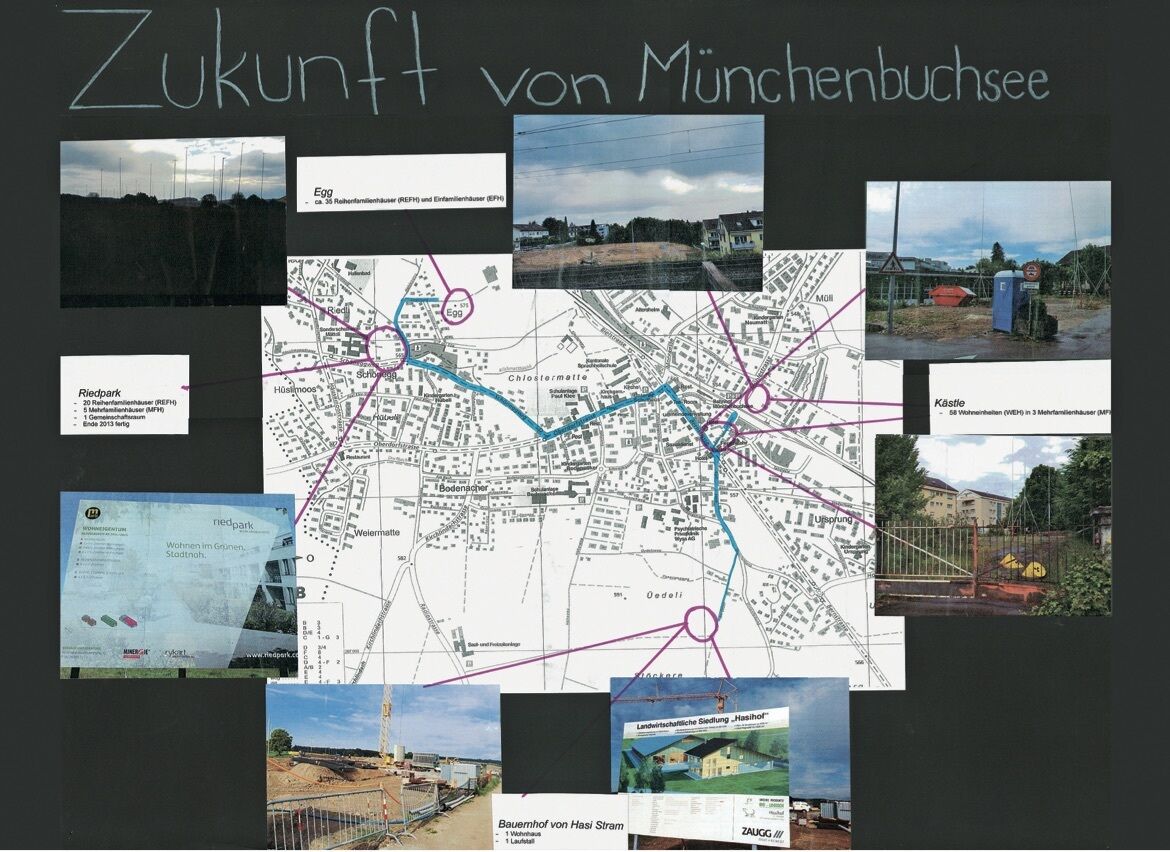 L’enseignant invite un spécialiste de la construction, un architecte ou un urbaniste, qui peut parler des procédures de planification, des principaux instruments de planification et du déroulement d’un chantier. À la commune, les élèves se renseignent sur les zones où des planifications sont en cours et recherchent leurs objectifs et en quoi elles consistent. Ils étudient le plan de zones et où se trouvent des demandes de permis de construire en cours sur la commune. Ils demandent aux maîtres d’ouvrage ou architectes compétents des plans et des informations. Il peut s’agir non seulement de bâtiments mais aussi de reboisements, de renaturations des eaux ou de projets d’infrastructures comme la construction d’une nouvelle route.