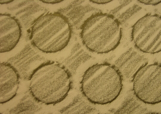 Elaborazione Safari tattile: le alunne e gli alunni esaminano la struttura delle superfici sia all’interno che all’esterno della loro scuola e documentano queste strutture con l’aiuto del frottage. Le „texture“ possono essere ricalcate su carta sottile con una matita morbida (grafite, pastello a cera). Sul retro del foglio gli studenti annotano a matita il nome, la posizione e il materiale. L’insegnante può assegnare alcuni elementi obbligatori come compito generale. Per esempio, ogni alunna e alunno deve ricalcare almeno una parete esterna, una parete interna, due diversi rivestimenti del pavimento e un mobile. Al ritorno in aula, i ricalchi delle strutture vengono ordinate su grandi tavoli, confrontate e discusse. Quali potrebbero provenire dallo stesso luogo? Quali sono le differenze e le somiglianze? La soluzione è indicata sul retro dalle alunne e dagli alunni stessi.