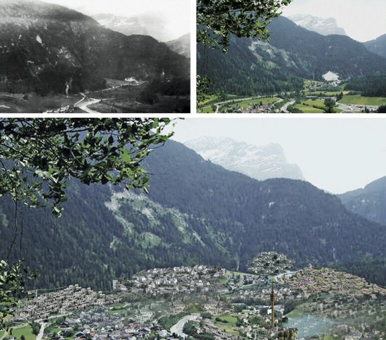 Ciò richiederà alcune riflessioni su come l’ambiente costruito potrebbe svilupparsi, sia in senso positivo che negativo. Queste considerazioni possono nascere da una critica della situazione attuale o basarsi sullo sviluppo logico dei processi storici o, ancora, sull’idea di uno sviluppo desiderato. Il risultato finale sarà un «trittico storico» comprendente passato, presente e futuro. Si può ricorrere a una tecnica a scelta, come il collage, il disegno a mano oppure usare programmi di editing delle immagini.
