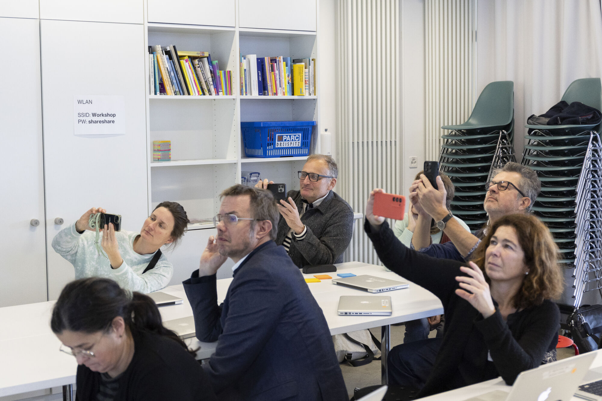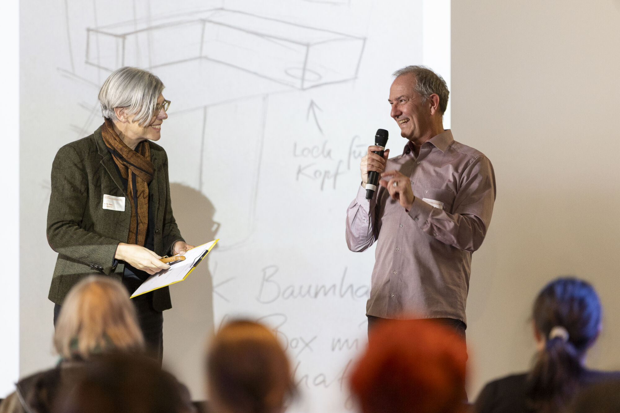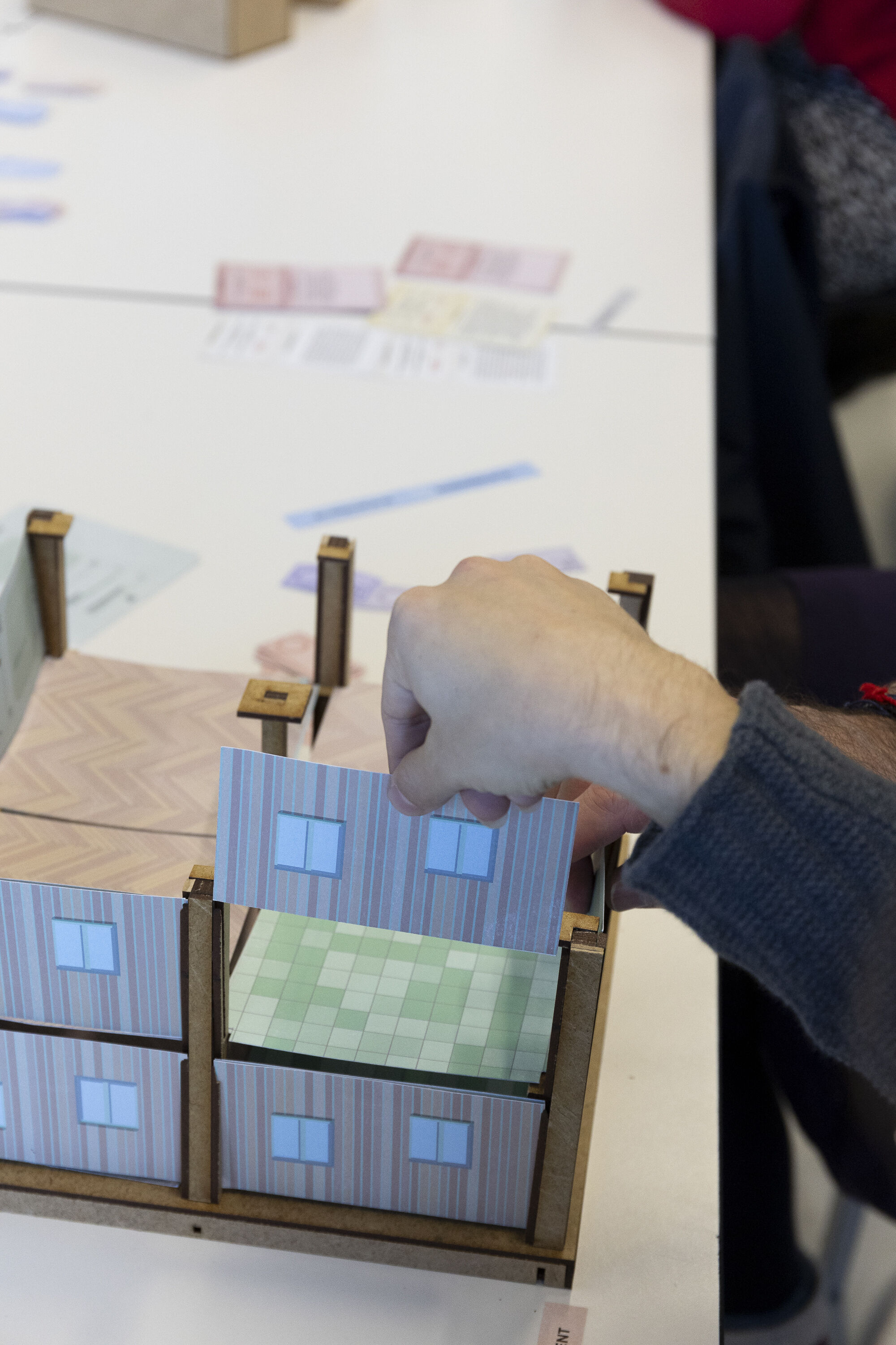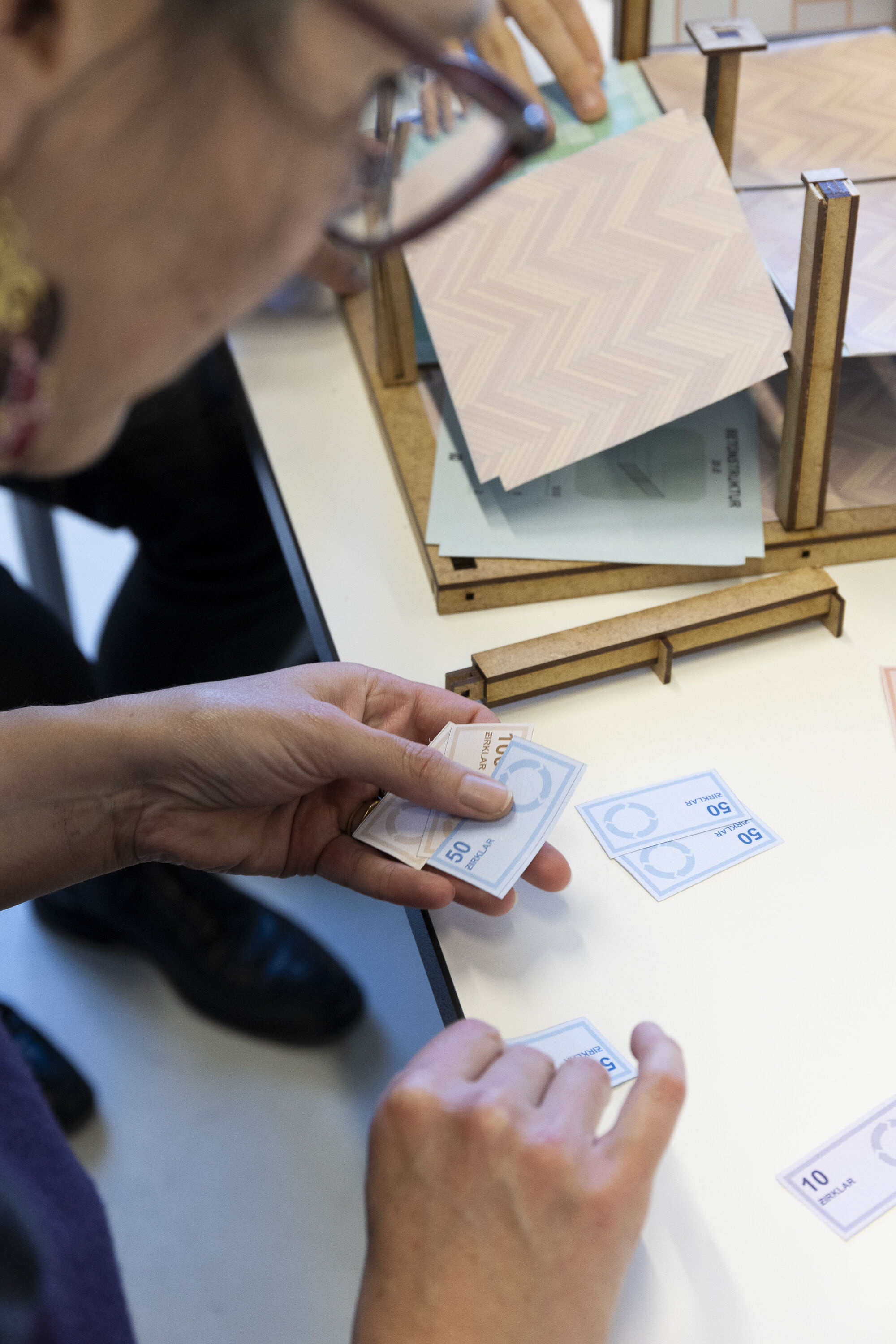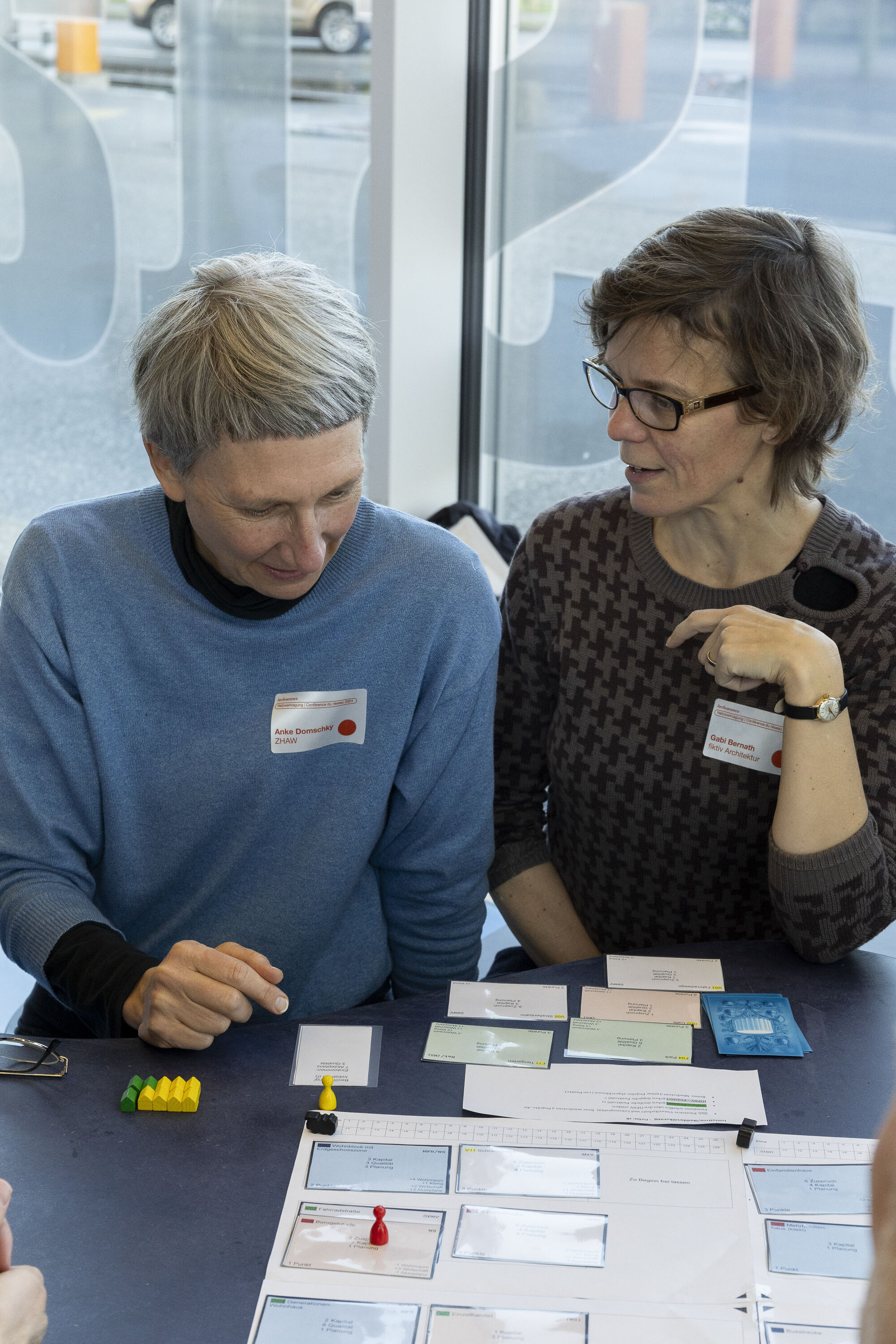 Vier verschiedene Workshops boten die Gelegenheit, selbst zu spielen: Andri Gerber brachte das Re-Use Game von der ZHAW (Michelle Schneider) mit, das die Komplexität, Herausforderungen aber auch Vorteile der Bauteilwiederverwendung spielerisch vermittelt. Lars Kaiser von Urban Equipe liess uns zusammen mit Confiyet Aydin vom Deutschen Architekturmuseum das Spiel Conflicity ausprobieren. Ein Strategie- und Rollenspiel, das komplexe Sachverhalte in der Stadtentwicklung verständlich macht. In einem Workshop des HEK konnten die Teilnehmenden mit Augmented Reality Raumerkundungen mit 3D-Wesen machen – und Nevena Torboski von der drumrum Raumschule führte mit Architektur im Spiel aus, wie sich mit beliebten Spielen wie dem Leiterli oder Memory eine kreative Auseinandersetzung mit Baukulturthemen fördern lässt.
