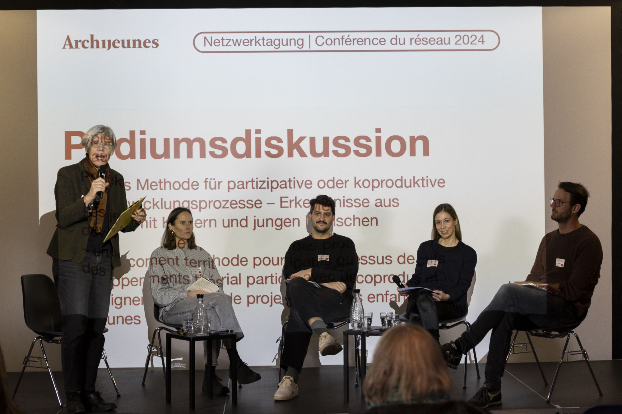 Ein von Karin Salm moderiertes Podium diskutierte in der Folge, wie Spiele – in Projekten mit Kindern und jungen Menschen – als Mitwirkungsmethode in der Raumplanung und zur Vermittlung städtebaulicher Prozesse genutzt werden können. An der Diskussionsrunde haben Olivia Jenni vom S AM, Lars Kaiser von der Urban Equipe; Anne-Chantal Rufer von Ville en tête und Mathias Schreier von der Metron AG und dem Netzwerk Bildung & Architektur mitgewirkt. Am Ende dieses reichhaltigen Tages, liess Caspar Schärer vom BSA die wichtigsten Erkenntnisse des Tages in einer Synthese Revue passieren.
