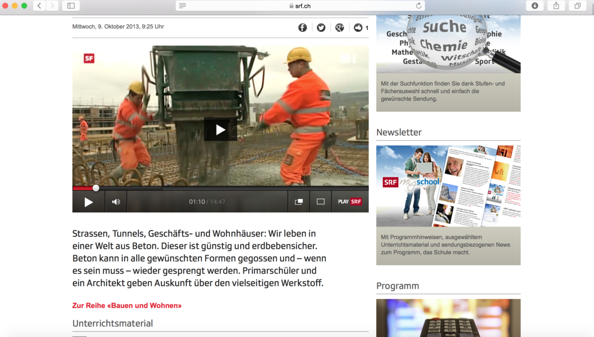 Die SchülerInnen erhalten eine Einführung zum Baustoff Beton. Sie lernen verschiedene Betonbauten aus der Schweiz kennen, erfahren die Ästhetik dieses Materials und erhalten einen geschichtlichen Bezug zum Baustoff, entweder durch die Lehrperson oder durch Vorträge der MitschülerInnen.