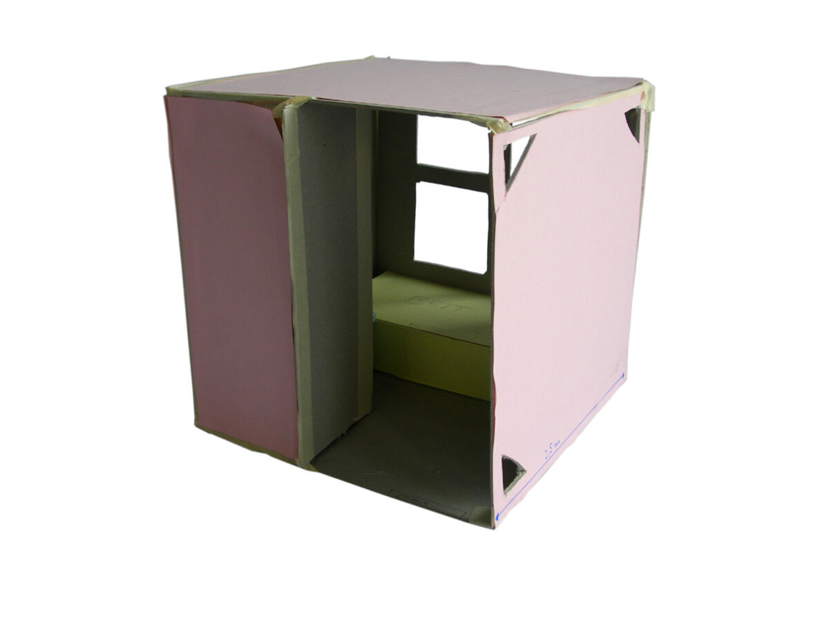 SchülerInnen skizzieren eine minimale Wohnsituation. Wie können sie lösungsorientiert auf möglichst wenig Raum alles Nötige zum Wohnen unterbringen? Wie organisieren sie den Raum. Die SchülerInnen müssen dabei die menschlichen Masse berücksichtigen und den Massstab einhalten. In einem zweiten Teil setzen sie ihre Skizze in ein Modell um. (Arbeitsblatt 2)